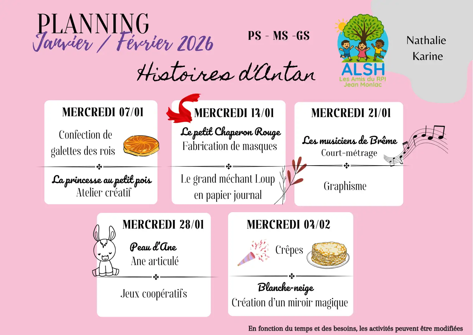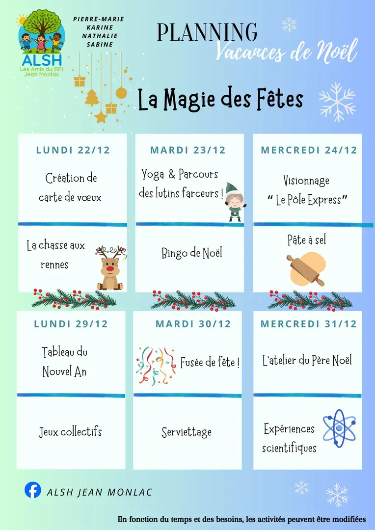 Les plannings pour les vacances de Noël et les mercredis de janvier sont disponibles:
